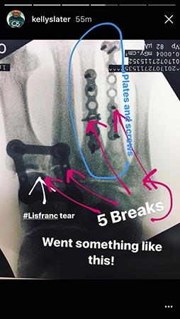 Along with the Instagram post, he also posted this story on his account, detailing the five breaks in his foot and the hardware he had installed. “Went something like this,” reads the caption.