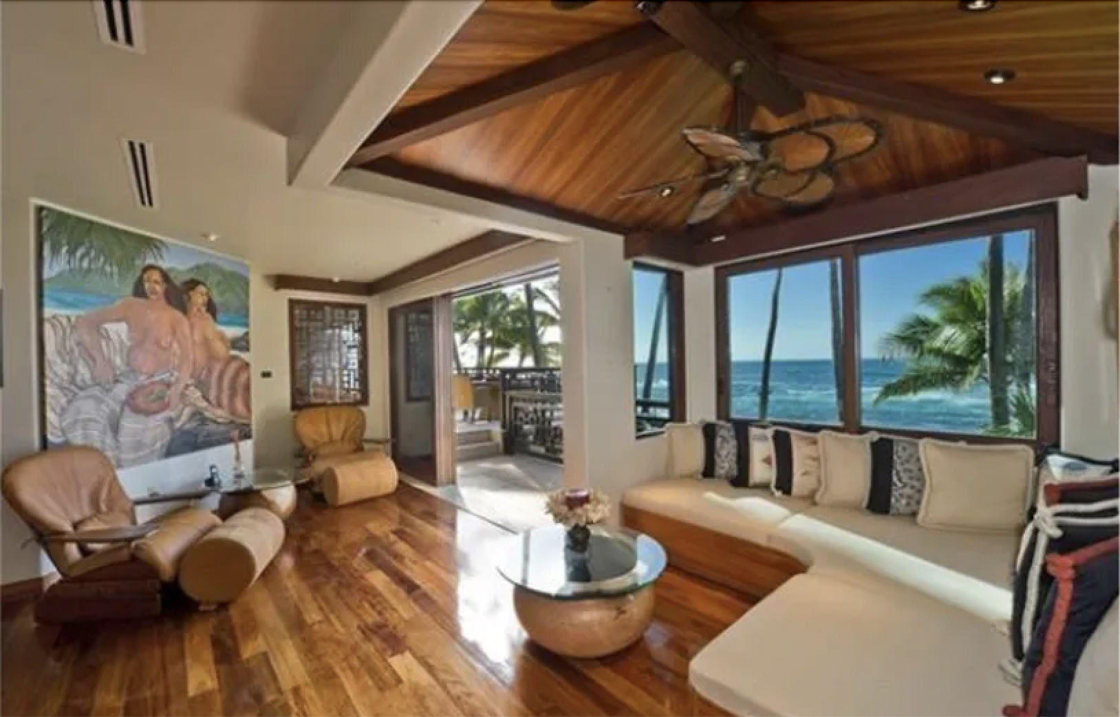 Located just outside of Haleiwa, the 8,000-square-foot, seven-bed, 7.5-bath beachfront home features a swimming pool, AC, hardwood floors, outdoor lanais, a garage, and 101 feet of private oceanfront property. The home is situated in the epicenter of the Seven Mile Miracle, a stones throw from Laniakea.
