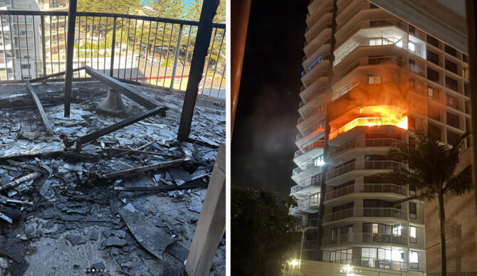 9 News Gold Coast reported that a fire started in the Carool Holidays Apartments – a block from Snapper Rocks – in Coolangatta around 12:30 a.m. When fire crews responded, they found a sixth-floor apartment completely engulfed by flames.
