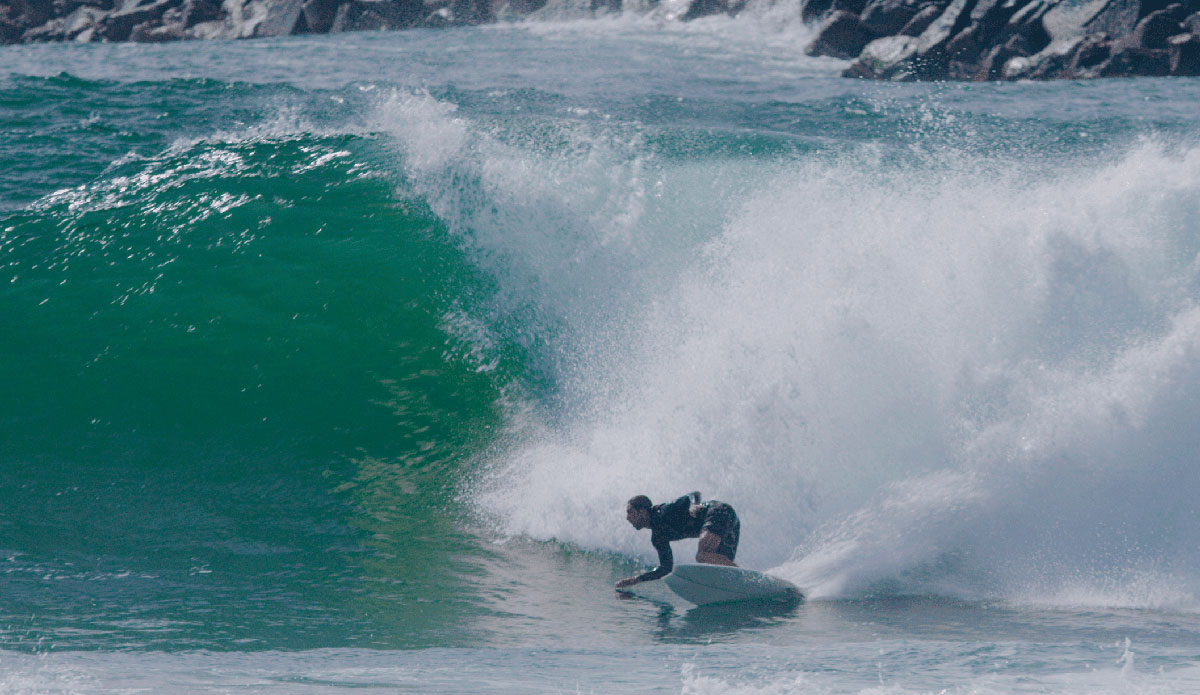 Young, as he is wont to do, was on a unique asymmetrical while Towner pulled out his trusty shortboard, and as you can see from these photos shot by Georde Grigor, they squeezed as much juice out of a juicy swell as they could.