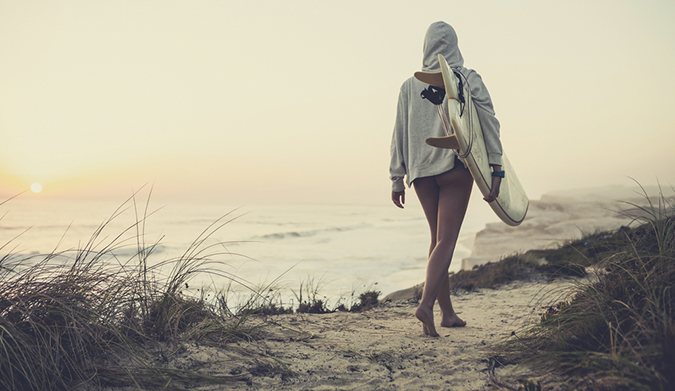 “What are you doing over there?” A year ago, I was called out. Timid and unsure, I sat on a ridiculous foam board and tried desperately to keep it from slipping out from under me. Now I have the start of a small quiver. I used to stand on the beach and be intimated by the beautiful boys arching their backs and charging with power and grace in the water. Now they call my name and smile when I paddle into the lineup.