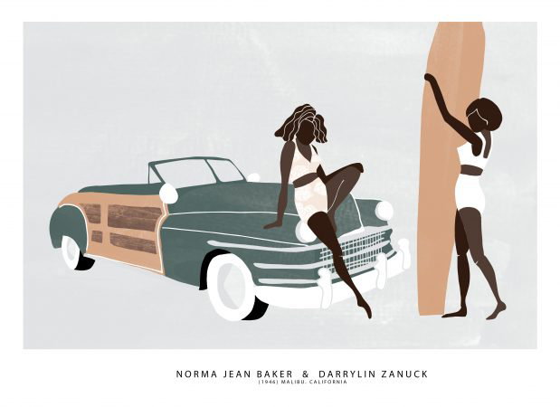 Darrylin and another famous Malibu surfer. Illustration by Lizzy