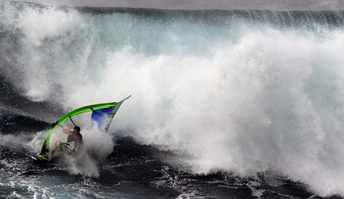 The Mecca of windsurfing, Maui allows for plenty of big waves and gaping heights. The sport spawned in California, moved to Oahu, then matured in Maui. With most of the major competitions in Europe, Ezzy surfs as the only Hawaiin on tour. “A lot of guys don’t see the point in competing because the conditions are so different than Hawaii,” he says. “The tour isn’t a good representation.” In Hawaii, the waves climb higher, crash more powerfully, and the wind blows from the opposite direction of Europe. A surfer’s orientation changes with the wind. “It’s always at your back,” says Ezzy. Because of rivaling wind patterns, a Hawaiin windsurfer must relearn every skill with the opposite foot forward to compete in Europe. “Imagine throwing a baseball with your right arm your whole life, then someone ties it behind your back and tells you to go pitch,” he says. “It’s like that.”