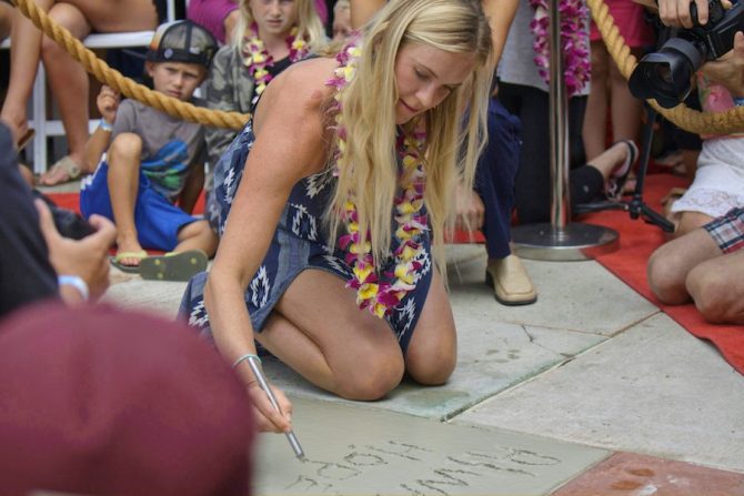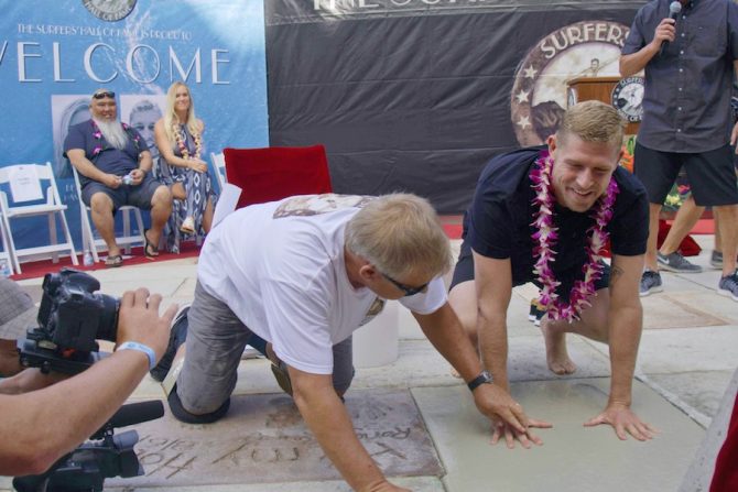 Initiated by owner and operator of the surf shop, Aaron Pai, the Surfers’ Hall of Fame inducts surfers each year that have been instrumental in moving the needle of surf history. And this year, Mick Fanning and Bethany Hamilton dipped their hands in the wet cement.