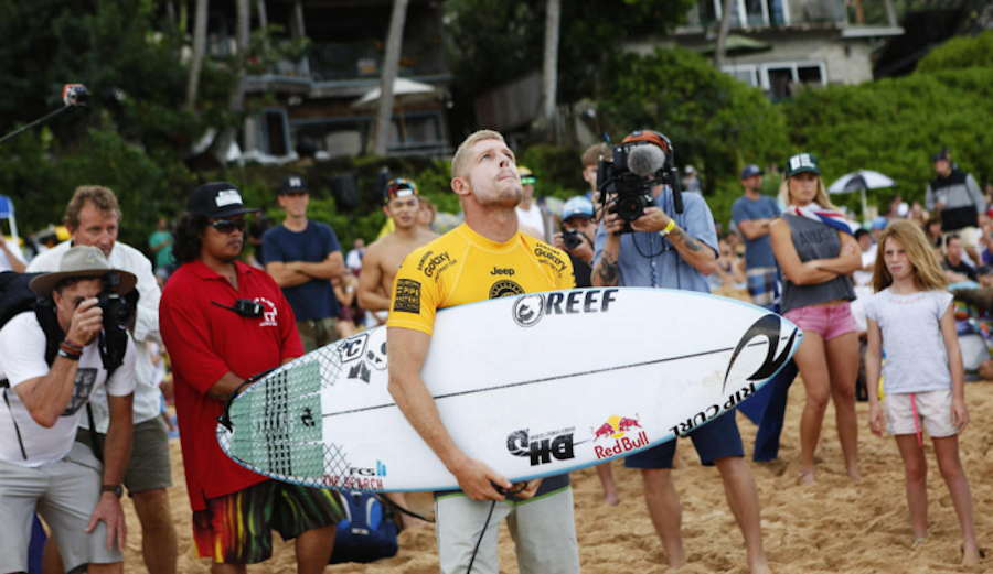 By no means was this perfect Pipeline. With a dwindling swell and a bit of that classic Oahu morning sickness, the Billabong Pipe Masters got underway Thursday, starting with the final heat of Round 5 and then into the Quarterfinals. After C.J. Hobgood’s final bow from the World Tour (going down to Gabriel Medina), Mick Fanning drew Kelly Slater in Quarterfinal number two.
