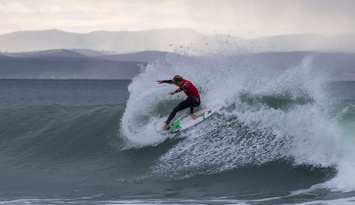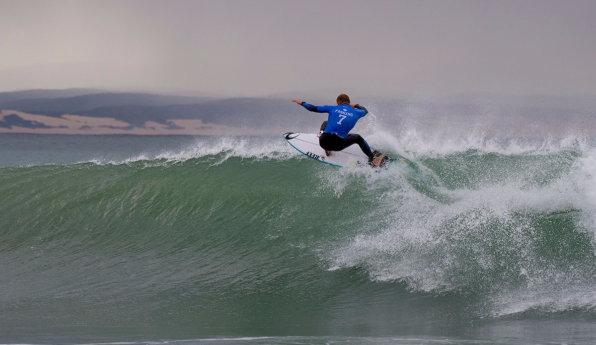 Although the smaller waves catered to a more futuristic approach (one which John John Florence used), Mick Fanning held out for the old guard, using his rail game to win the event. His second wave of the event garnered a 9.93, the highest score of the contest.