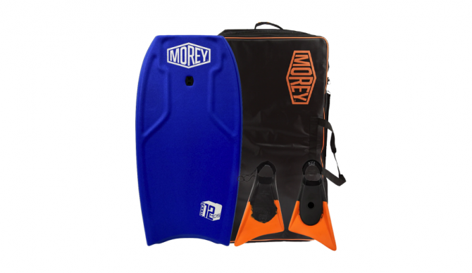 The Mach12 comes in a few different packages, the Premium, pictured above, includes the board, fins, fin tethers, and a boardbag. Photo: Morey Bodyboards.