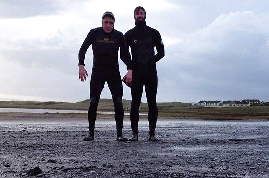 Nicky and Brian post-surf in Ireland. Photo: Nicky Kelly