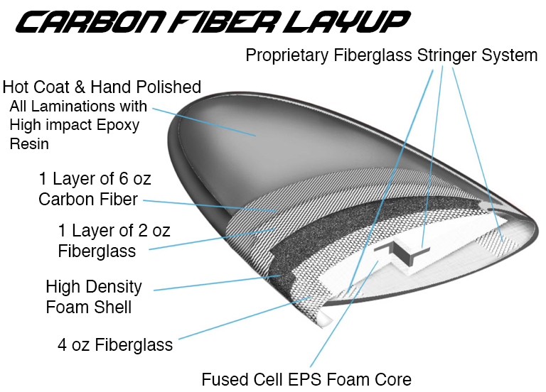 Many people are under the impression that all carbon fiber surfboards are hollow. How are your carbon fiber surfboards constructed?