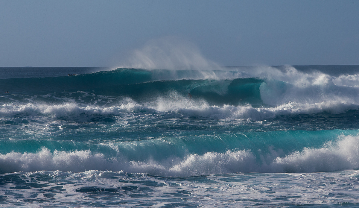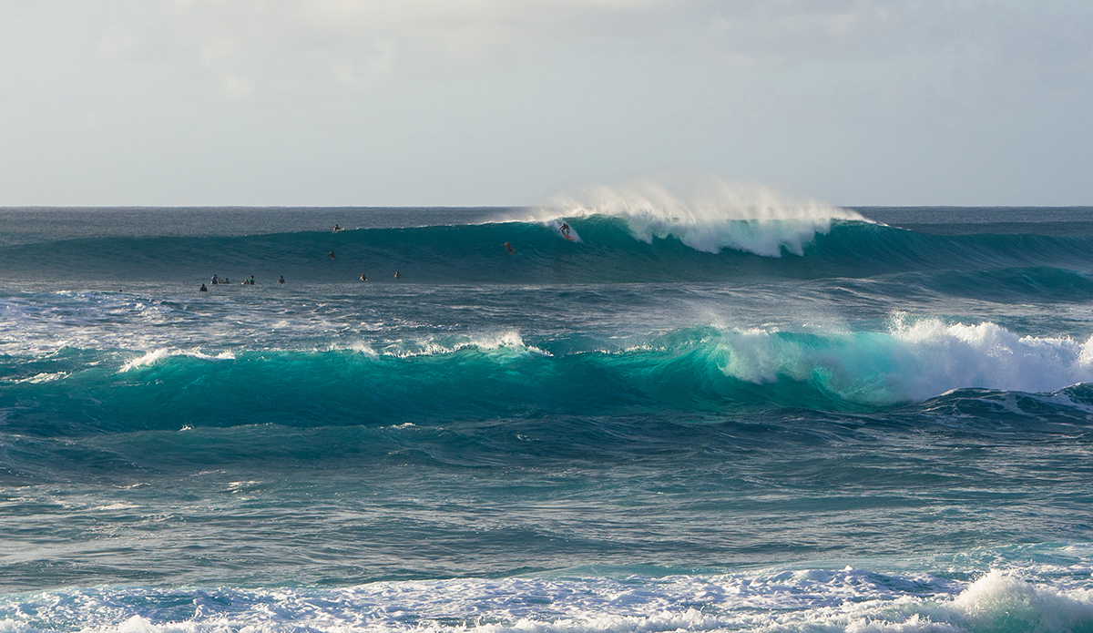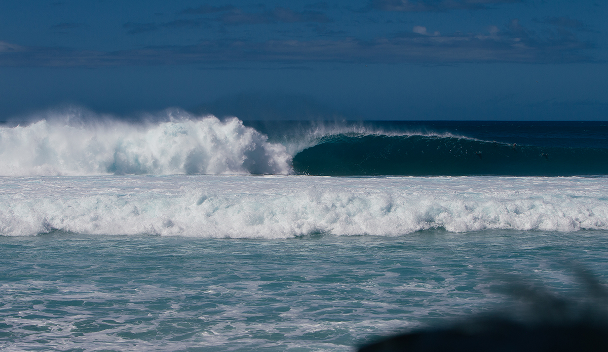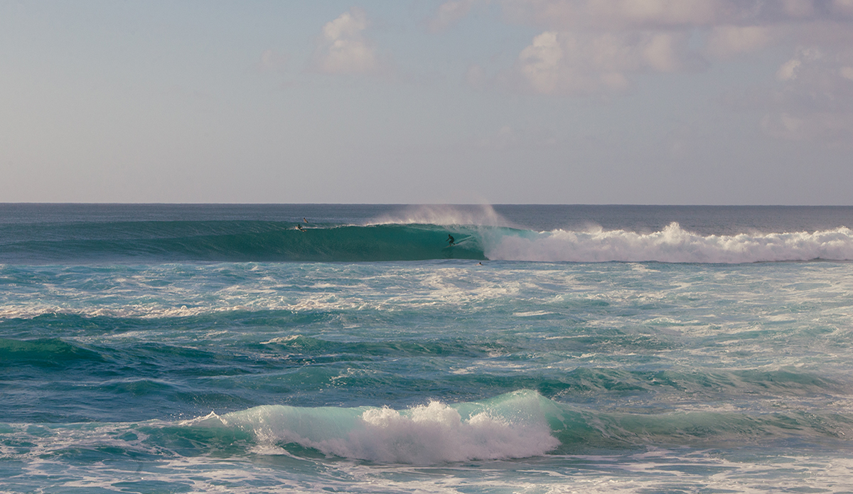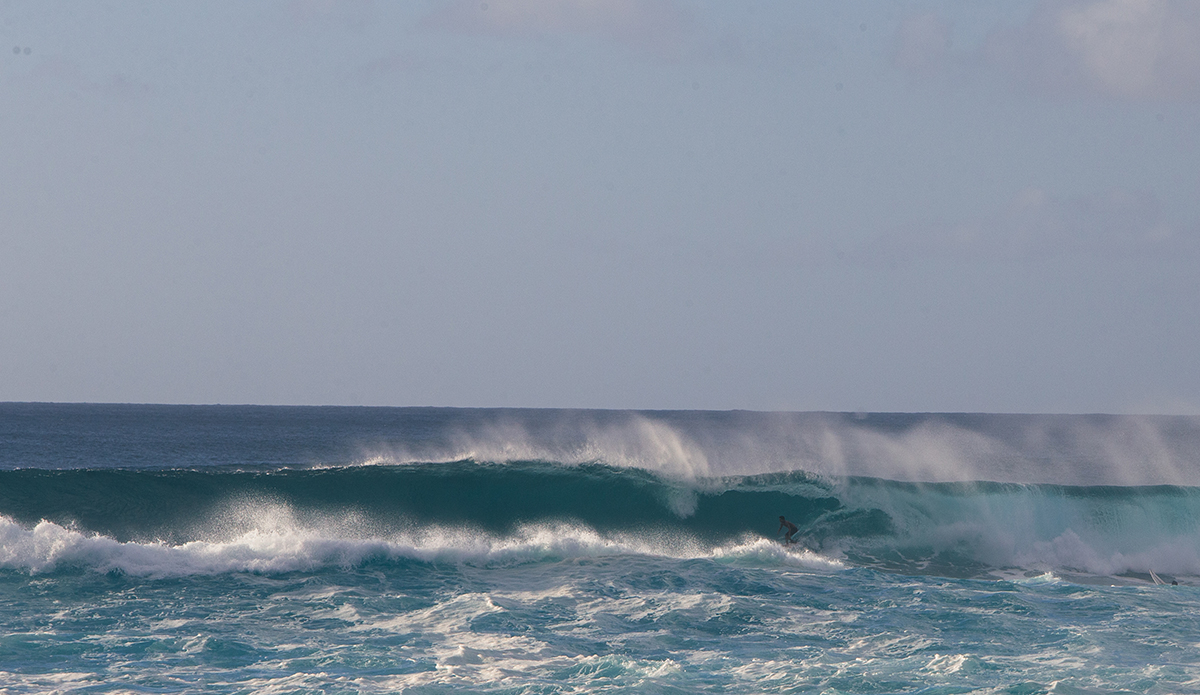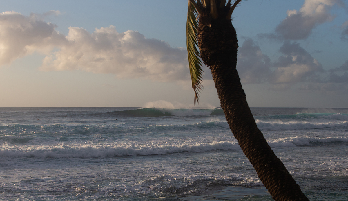 This season, though, I almost forgot it was the end of February. Every night at sunset, I drove my old truck up the narrow, winding road up Pupukea, and after the hairpin turn, the view would turn to lines, eight or more in a row, marching in over the horizon. It’s rare to see lines so defined from so high up. The last two weeks, it seems they’ve been there almost every day.