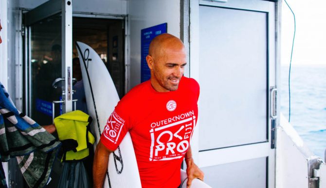 Kelly Slater at the 2017 Outerknown Fiji Pro. Hey, who can blame the fella from supporting possibly the best event on tour? But it does feel a little funky for a competitor to essentially own an event. Photo: WSL/Ed Sloane