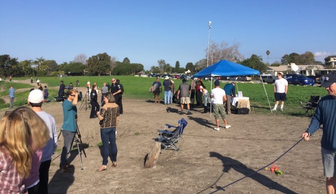 Local myth holds that the localism that has defined Lunada Bay for so long was one that the local police also implicitly endorsed. Reports of officers not doing their part to protect visitors from harassment, or taking their accounts seriously after the fact, are numerous. And yet, at the scene of today’s protest things appeared differently. No funny business.