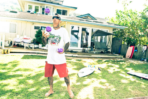 If he wasn’t surfing, Christian Fletcher could rarely be spotted without his juggling apparatus. He told me that juggling repairs the grey matter in the brain and keeps the mind active. Nobody juggles on the North Shore. If juggling ever becomes a certifiable “thing,” Christian can certainly take credit for being at the forefront of the trend. It’s yet to be determined whether his passion for keeping multiple objects suspended in the air will be as culturally seminal as his influence was on the thrusting of surfboards in the air, but nonetheless, he’s committed and he’s definitely first to market.