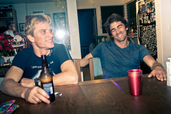 Meanwhile, Mark Healy was holding court at the table. Cara had recently busted out some high school prom photos of Mark and they were in full reminiscing mode. Stories of limousines, karaoke, and favorite Honolulu dive bars were being discussed. Greg Long sat down with a fresh drink, just as our illustrious host switched up the jams. The opening bars of “Don’t Change” by INXS blared through the hi-fi. The kitchen table erupted in nods of approval and nostalgia. Over my right shoulder, I spotted Chris dancing like Michael Hutchins while John Pyzel handcrafted me a vodka tonic in a mason jar. After several hours and countless more classic North Shore stories, the impromptu soiree finally wound down. As I left, I could hear the comforting pops & cracks of vintage Steely Dan vinyl wafting through the moist ocean air. I wandered across Kam Highway content with the knowledge that I couldn’t have chosen a better group of people on the North Shore to spend the evening with.