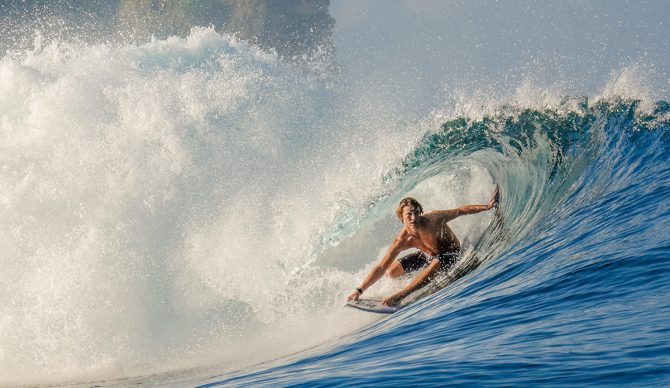 Crawford was staying in Sumba, at the Nihi Resort, which I covered recently in our list of most expensive surf resorts. Apart from being incredibly, well, expensive, it is also known as the only Indonesian resort, and one of a few in the world, to have exclusive access to the wave. To surf Occy’s Left, you need to stay at the resort and cough up the $US500 a night fee, plus the 100 bucks a day if you want Jet Ski assistance. Only 12 surfers can stay at the resort, meaning crowds don’t exist. That’s why Jennifer Lawrence, Christian Bale, Heidi Klum, the Beckhams and Brody Jenner have all stayed here. They all are goofy-footers.