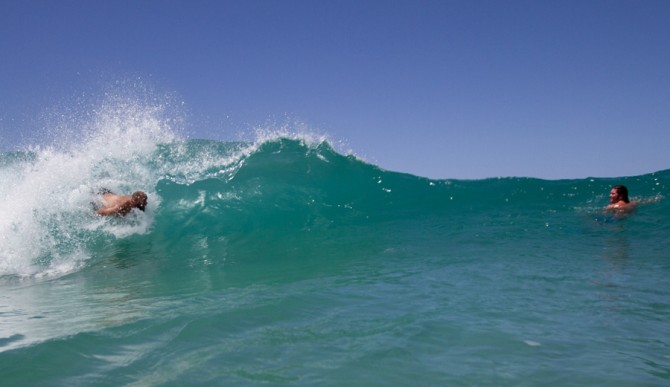 There are some riders who just like it. They may turn and Prone into the late barrel knowing there’s no hope of coming out the other side. His friends might even yell, “Canonball!” at the sight of such hopeless debauchery. Other bodysurfers look both ways and know the only way to feel this wave is to lock your arms to your side and launch straight for the sand. When the wave doesn’t give you left or right, you go straight simply because its fun.