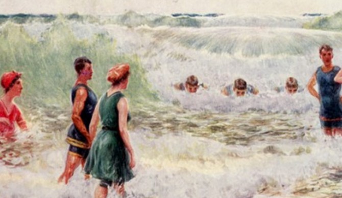 “Surf Bathing, Shooting the Breakers,” 1911, Percy Spence.Photo: Courtesy of Swell Lines Magazine