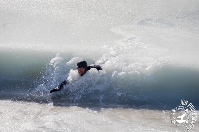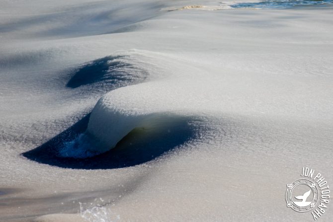 With a floundering temperature in the low, single digits this past week, I knew there was a good chance the Slurpee waves would find their way back to Nantucket. Sure enough, on the morning of January 2nd, I pulled my car up to Nobadeer Beach, and there they were. This time, two friends surfed just beyond the icy eddie, hooting and hollering and holding up giant icebergs above their heads in neoprene-gloved hands. I ran up and down the beach, taking as many shots as I could of this freezing, fleeting show of nature. Slurpee waves are the kind of thing you might only be lucky enough to see once, so I count myself as very lucky to have seen them twice.