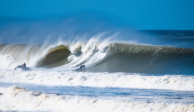 “Juan, one of Sebastián’s close friends, managed to catch a couple of waves before it was his turn. The ski driver, Gastón, spotted a mountainous swell marching towards the lineup,” Andy Higgins told The Inertia, offering a play-by-play. “Sebastián launched onto it with determination, focusing on finding the perfect line to descend the wave without getting caught by the wind-induced bumps. After navigating his way onto the shoulder of the wave, he headed back to the channel, where he was met with cheers from his friends.”