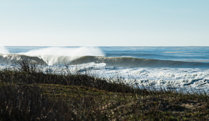 Earlier this month, a powerful swell pounded the coastline with a stiff offshore breeze that lit Seb’s home waves up like a Christmas tree. Waking up at 4 a.m., with the crew, Sebastián took a team of chargers to Rocha. They had a hint that one spot might be working and when they arrived, the wind was blowing offshore and a rocky, barreling slab was waiting for them.