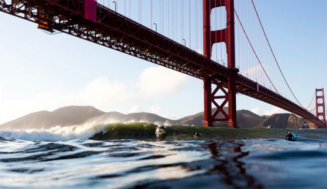 Apparently not. I recently came across an online feature titled “54 Cool Things to Do in San Francisco.” Right up there in the number one spot, of course, was “Walk Across The Golden Gate Bridge.” Fair enough. The list ended with “Lunch In Union Square” (with no mention of the blighted area’s many unfortunate, unhoused residents). Riding the cable cars was number 15, and way down at number 40 was “Standup Paddling On The Bay,” which at least referred to some sort of board sport. But surfing? Nothing. Zip. Despite the city’s often world-class surf conditions and growing population of enthusiastic participants.