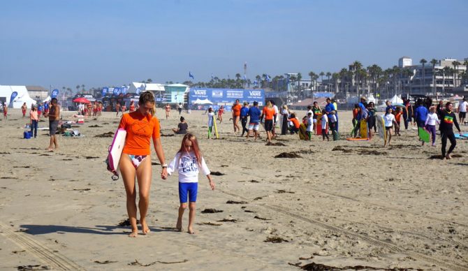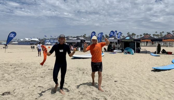 But despite all the fun down at the main event, there’s no doubt that the stoke is highest a hundred yards down the beach at the Vans Surf Camp. The Surf Camp has run during the past two days, using the resources, including pros available at the US Open of Surfing, to bring underserved youths from local communities to the beach and get them out in the surf – for many kids it’s their first time doing so.