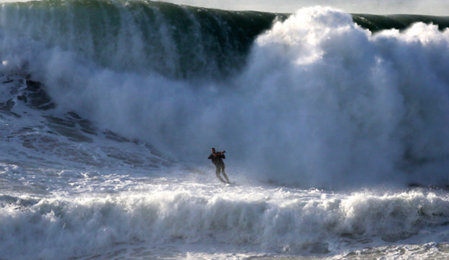But you gotta hand it Nuno. This certainly ain’t easy (or sane, but whatevs). He’s a passionate musician with an affinity for large surf, too. His goal, reports SurferToday.com, is to play his fiddle in the most extreme environments – a blending of his thrillseeking and musical passions. And it wasn’t just some willy-nilly, foolish operation. He prepared for this.