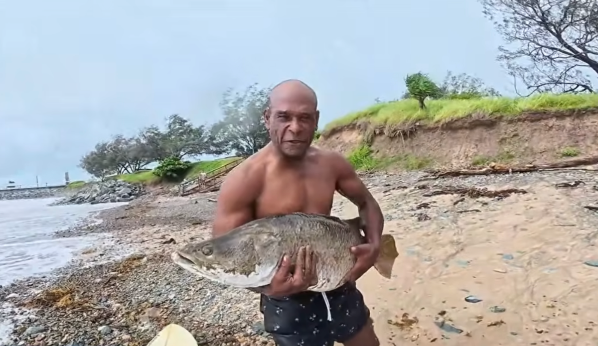 Reeling in any fish can be a task, let alone one that’s grown to about a meter in length. But take away the reel and ask a man to grab that fish with his bare hands and you’ve got an entirely different ballgame. Now do all this while surfing. Actually, not just while surfing, but while on a party wave with one of your best friends with the fish in question dropping in on you both. Those are the cliff notes of how Heath Snedden and his friend Jeremy got their hands on a sizable barramundi.