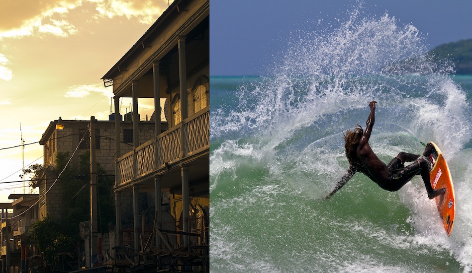 The once magnificent city of Jacmel suffered considerable damage in the recent earthquake - Icah Wilmot does some damage at Pistons, the local spot at the mouth of the Jacmel River.