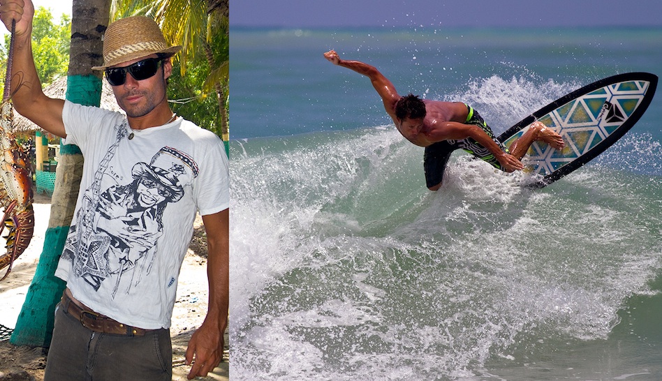 Emiliano Cataldi with fresh Caribbean lobster for lunch after a morning surf. Photo: John Seaton Callahan.