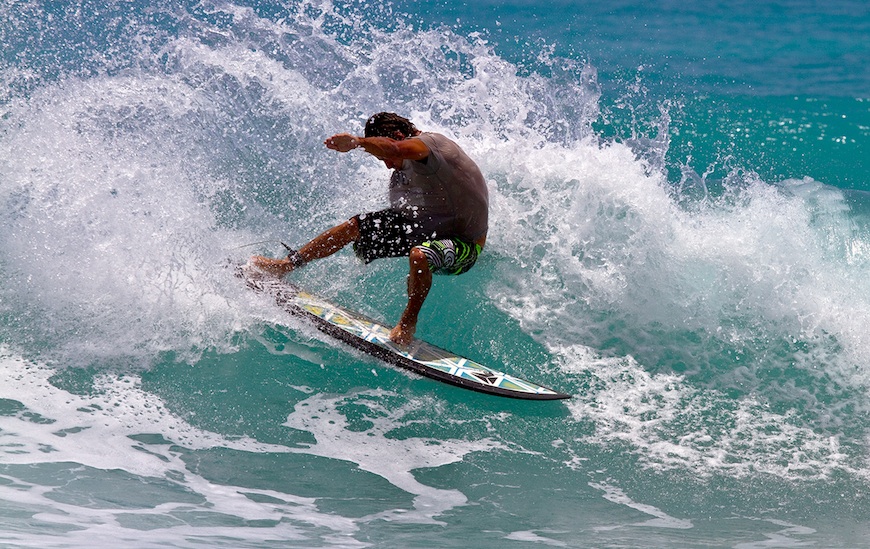 Sam Bleakley, on the nose in classic Caribbean conditions at Blue Point. Photo: John Seaton Callahan.