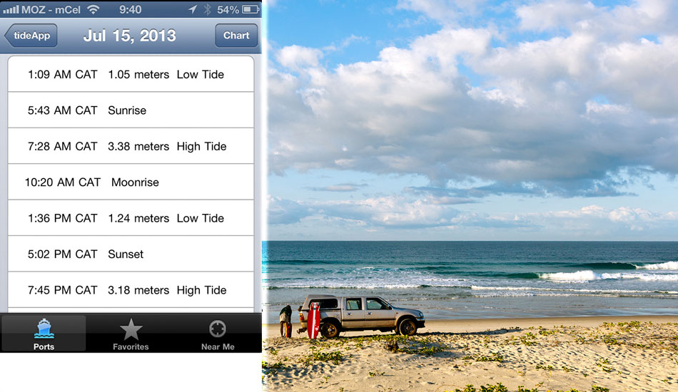 With the Mozambique Channel nearby, we learned quickly that tides are a big factor in this area. With a daily swing of up to four meters between high and low tides, a good right point at peak low tide would cease to exist at peak high tide, so a good tide chart and timing were critical. The beachbreaks were much better on an incoming tidal push, so the plan was to hit the points at peak low and then move to one of the beachbreaks as the tide pushed in.