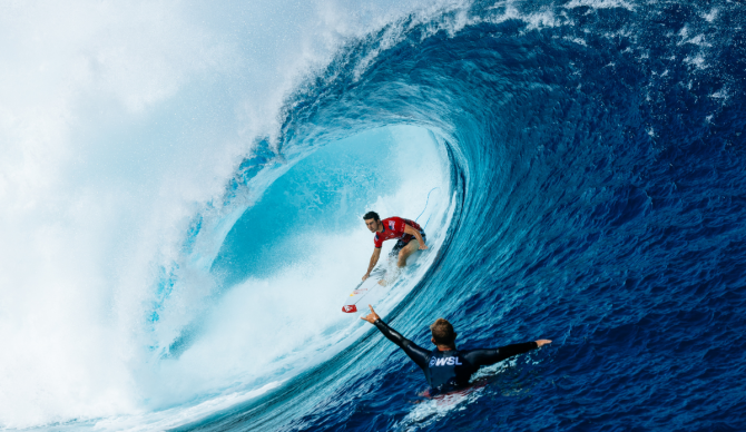 The stakes don’t usually feel too high on day one of a Championship Tour contest. But Teahupo’o isn’t your typical tour stop, and the Tahiti Pro’s place as the final event before the WSL Finals meant a handful of surfers were paddling into their first wave with a lot on the line. It didn’t hurt that Chopes had been bombing just prior to the event and athletes were in a routine of packing some of their best waves of the year during freesurfs. High competitive stakes or not, it’s easy to be entertained watching guys truly enjoy A-plus conditions all to themselves.
