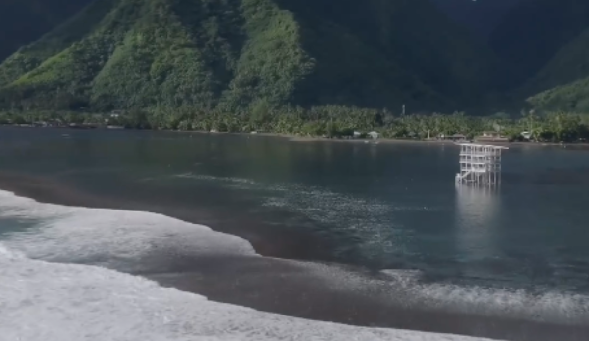 The controversial new judges’ tower for the 2024 Olympic surfing competition at Teahupo’o is now standing. Drone footage shared by photographer Tim McKenna offered a first look of the new aluminum structure.