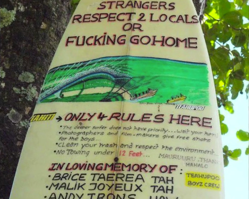 While bodyboarding at Sapinus last May, a group of local Tahitians were overpowered by pro surfers with jet skis who wished to tow in. There was no ask, no “may we join,” nothing. For the men on the skis, it was show up and get whatever wave you wanted. Not the most respectful ways to go about surfing. John Duval, one of the locals, had enough after an hour of waiting for a wave. He stroked into one, the same wave that Dave Wassel was towed into by his partner. The two had a verbal exchange, the contents of which can partly be found in this video.