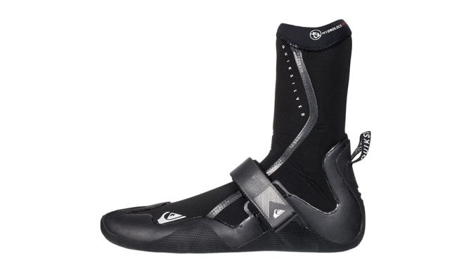 Those who are worried the Vans booties will be too narrow for their feet should check out the Rip Curl Flashbomb Booties. They’re a less-structured sock-like style of surf bootie, similar to the Patagonia R3 booties, but with an arch strap to prevent heel lift, and a slightly roomier fit. The Flashbomb lining is super cozy and dries fast – great for preventing bootie funk – and the ankle strap is a useful feature for keeping your boots from filling with water. Similar to the Patagonia R3 booties, they have a low-volume, high-performance fit, albeit with a lot less squeeze, so we could see them being a great choice for wider feet. The sole of the bootie is very thin, allowing for great board feel. It’s worth noting, however, that while the sole is plenty textured enough for great grip on a waxy deck, we found these booties can be a bit slick when navigating over wet rocks.