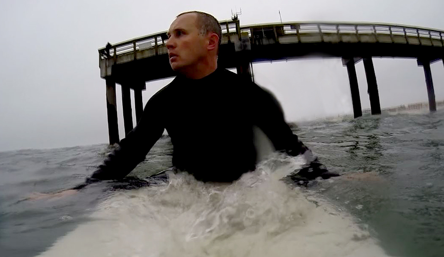 Nate Dinger waiting on a set at the St Augustine Beach Pier in St Augustine, Fl.