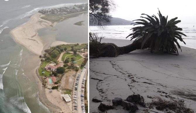 Surfrider Beach in Malibu has a new closeout section in the middle of First Point. Waves also now kiss the lifeguard stand at high tide, forcing the tower back further and further on the now-disappearing beach. The sand’s movement at First Point is also degrading the Adamson House, a California State Historical Landmark. A large 86-year-old palm tree fell over into the new flow stream last year, and another one will go soon. There has been systematic destruction to the area around the boathouse on the historic landmark built in 1929.