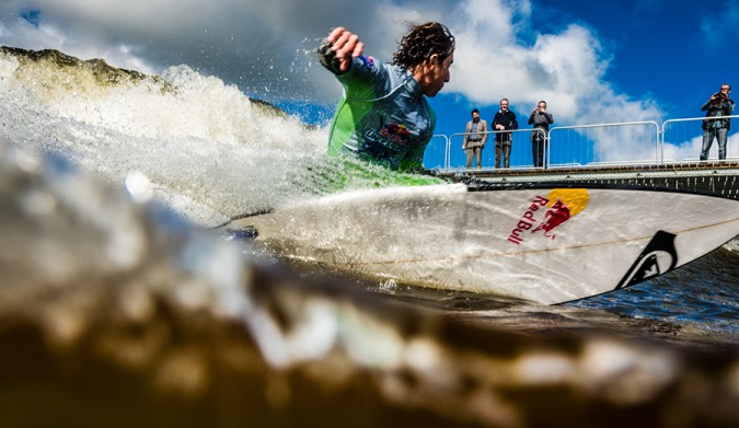 Leonardo Fioravanti performs during qualifying session of Red Bull Unleashed in Surf Snowdonia, United Kingdom, on September 18, 2015
