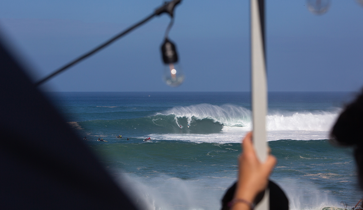 Once you were close, you could feel the energy. Waves pummeled the rocky cliffs and thousands of camera people all pointed their lenses to the massive faces. The commentators were riled up, the surfers were amped, and the show was on. The tent city was almost Coachella-esque: DJs played perfectly curated sets while the dancers cheered every time a surfer dropped in. When a cleanup set rolled through (and there were a couple!) people went mad. The excitement was tangible, and it was a party in all directions.