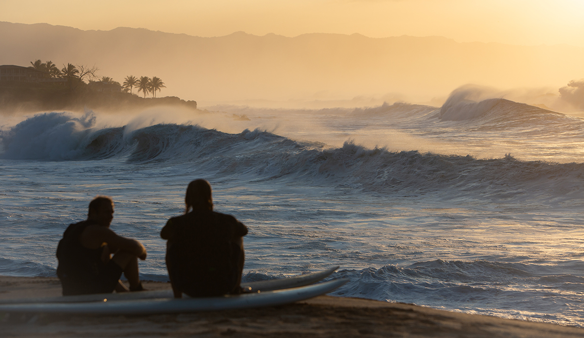 After the raucous celebration and awards ceremony commenced, the peaceful atmosphere at Waimea Bay resumed and North Shore residents ambled down to the shoreline to catch one before dark. Traffic eased, and as night fell, surfers and Eddie attendees alike basked in the beautiful sunset, feeling grateful to have been a part of surf history.