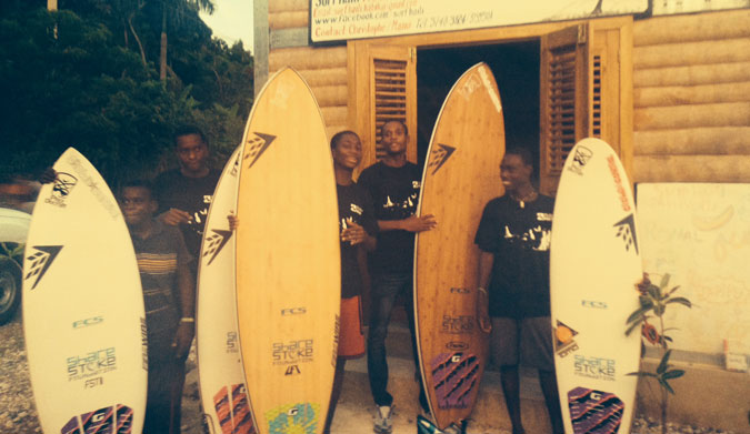 When we arrived at the Haiti Surf Guest House in Kabik Beach, we met Joan Mamique. As our host for the trip, he played a large role in the opening of the surf school. He led us into town, where we met many of the kids involved in the surf school. They worked tirelessly around the freshly erected surf school and cleaned up trash clearing the beach for the grand opening that took place the next day. I told one of the kids how great it was to see them all working together to make the school look so nice. “We are proud of this,” he responded, “and we must take care of it and make it nice because it is for all of us.”