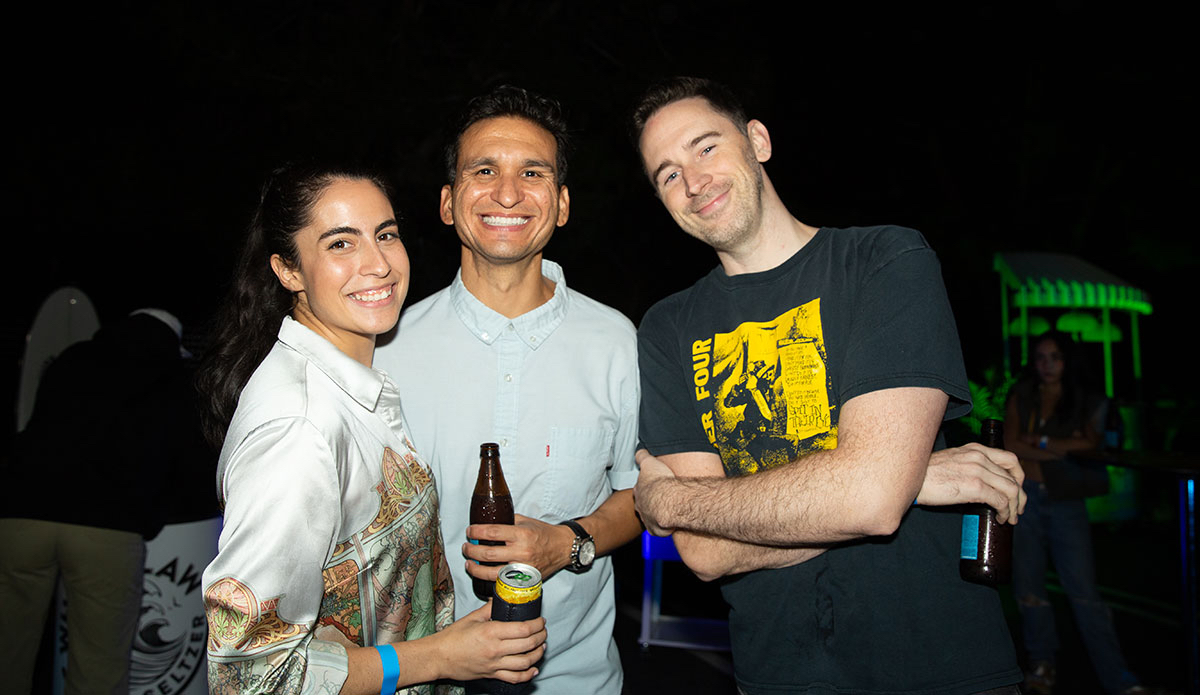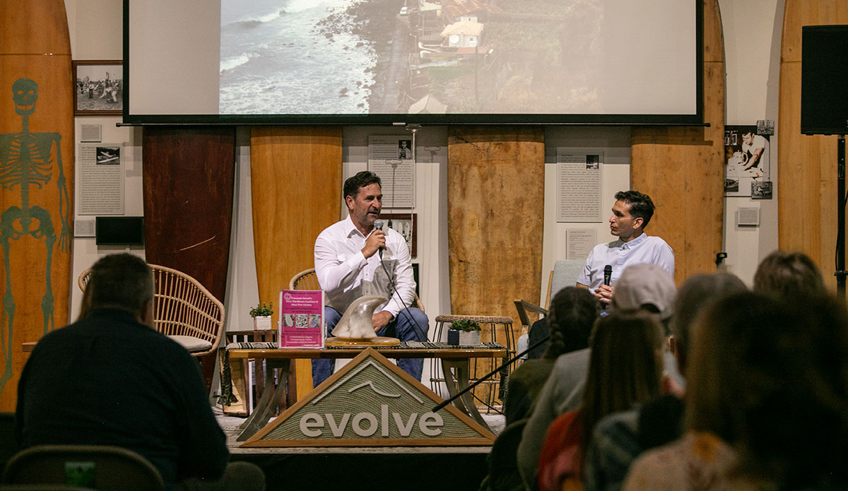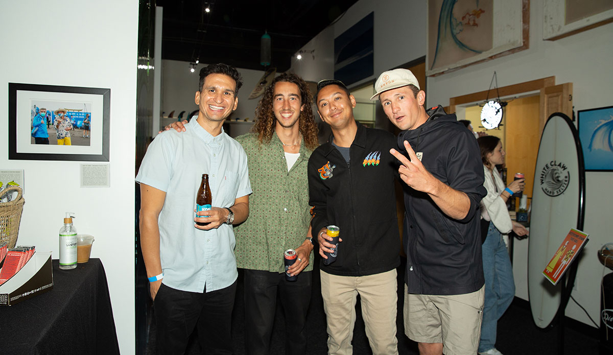 In case you’re not aware, EVOLVE celebrates unique individuals who’re making a positive impact in surf and outdoor culture, and this year, the lineup was stacked. Despite an uncharacteristically misty evening, the venue was packed with some 300 people, and the good vibes could be felt from the street. Any good party requires a bit of help, and this year we had some amazing partners, including White Claw, Kona Big Wave Brewery, Perfect Hydration Alkaline Water, KOE Kombucha, Rivian, Nomadix, SRF Surf Fitness, and Yew!