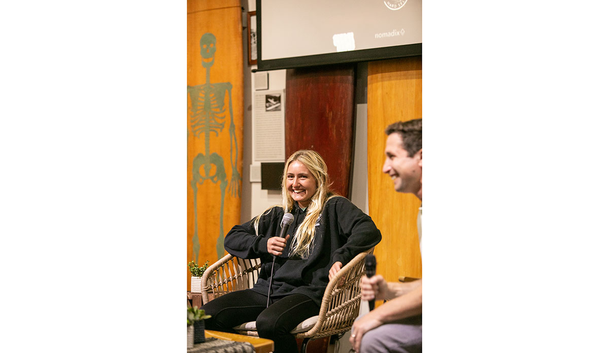 Next, Surf Ready Fitness owner Paul Norris and pro surfer Nolan Rapoza came on stage to talk about the benefits of surf-specific training and what it’s done for Rapoza, whose performance in recent years is testament to just how important training is. Norris wants to “help people surf forever,” and if that’s not something every surfer wants to do, I don’t know what is. The conversation emphasized how important keeping surf fit is, especially when you’re not able to surf for an extended period of time.