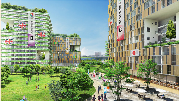 A computer-generated image of the 17,000-bedroom Olympic Village, to be built on Harumi island in Tokyo Bay.