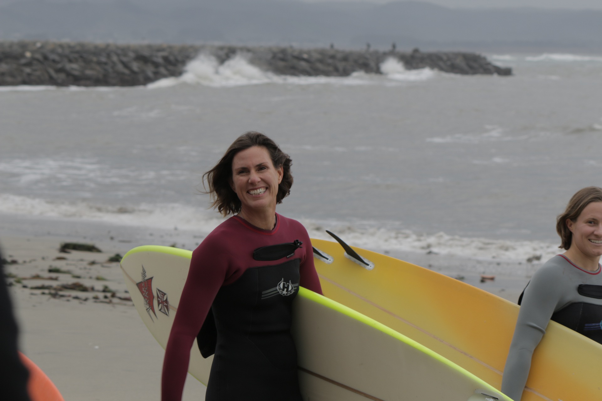 Sarah Gerhardt shocked the world when she became the first woman to surf Mavericks in 1999. The wife of big wave surfer, Mike Gerhardt, Sarah has been a fixture at Mavericks for the last fifteen years. In addition to being a mother of two and holding a Ph.D. in Physical Chemistry, today Sarah is one of the most respected female big wave riders, and she never misses a big swell at Mavericks.