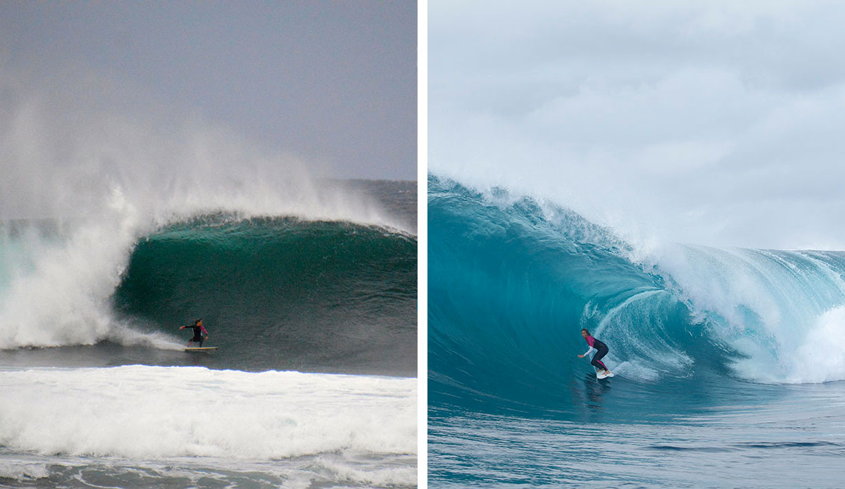 It was the publisher’s idea. They had done a book called Women Who Dare about female mountain climbers. It did well so they figured a book on women surfers might do the same. For a while, I wanted to do a book called Women Who Charge which was about women big-wave surfers, because that’s what is new in the world of women surfers right now. There’s a whole bunch of women who are pushing the limits at Teahupoo, Peahi, Maverick’s, etc. Taking dirty lickings and still ticking.