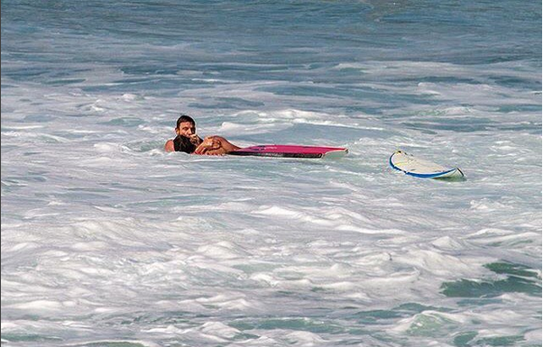 Andre Botha brings Evan Geiselman to shore after a catastrophic wipeout at Pipeline. Photo: @evangeiselman Instagram