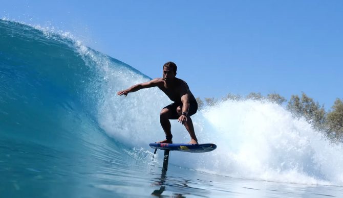 Kai Lenny, for his part, seems to be in the “like ‘em” camp. Or he at least appreciates their potential for creativity. It makes sense – as probably the world’s premiere do-anything multi-hyphenate waterman, Kai will take any chance he can get to ride a wave in a way that’s novel or innovative. At a recent trip to Kelly Slater’s Surf Ranch with Jamie O’Brien, that’s exactly what he did. Surfing switch, strapped in, and on a foil, Kai put the Ranch through its paces in a way only he can.