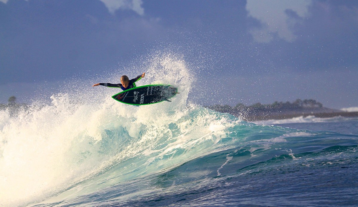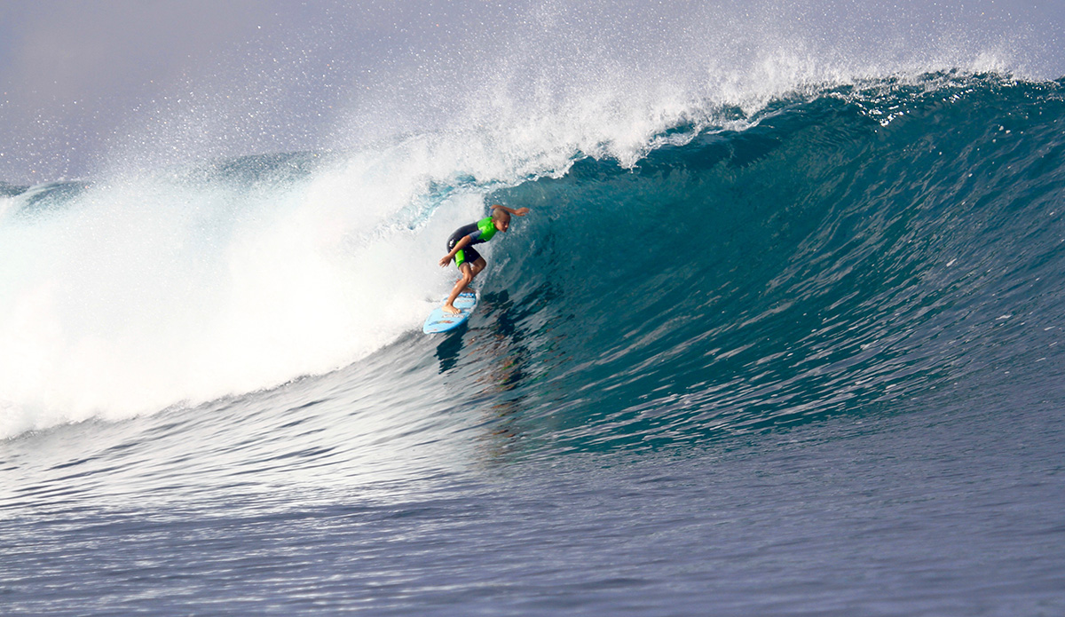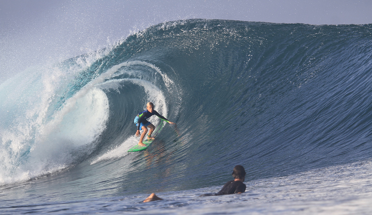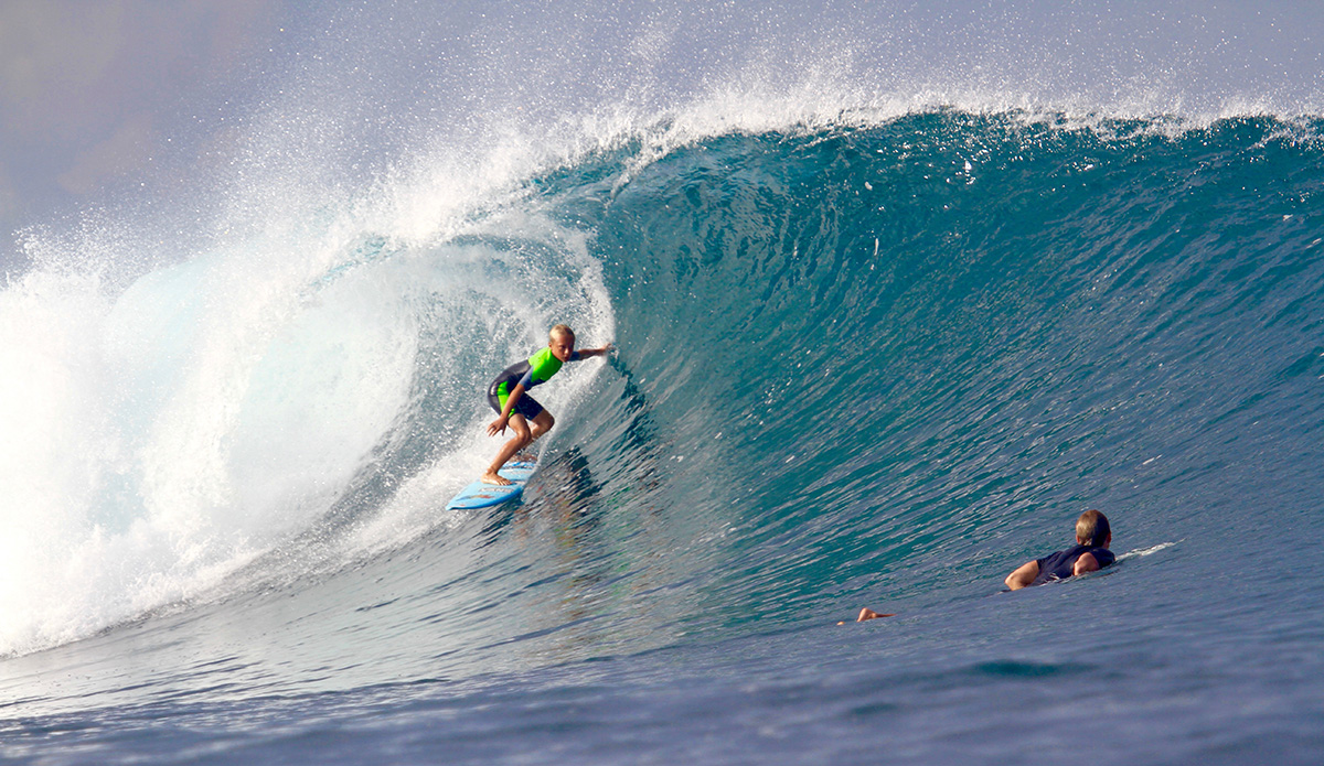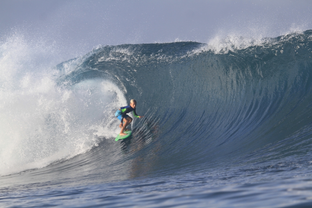 My name is Kaiser Auberlen and I am a 12-year-old surfer from the North Shore of Oahu. I have been surfing for seven years now and have been lucky enough to travel all over the world looking for waves. Most recently, I just took an amazing trip to Lakey Peak, Sumbawa, where my dad and I visited my Indo uncle Oney Anwar. It was an amazing trip and I love how surfing takes you to great places where you can meet cool people and get good waves.
